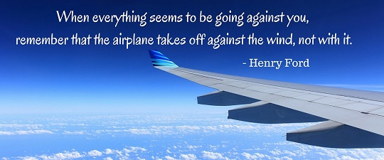 “When everything seems to be going against you, remember that the airplane takes off against the wind, not with it.” Henri Ford