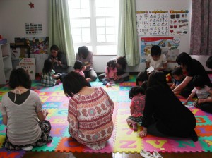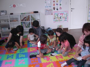 内容は私が担当している「英語で育児サークル」を少し延長したような感じ。初めて英語に触れた子供達もいたのか、初めは恥ずかしそうにしていたお友達もいましたが、みんな最後まで元気に参加して下さいました。