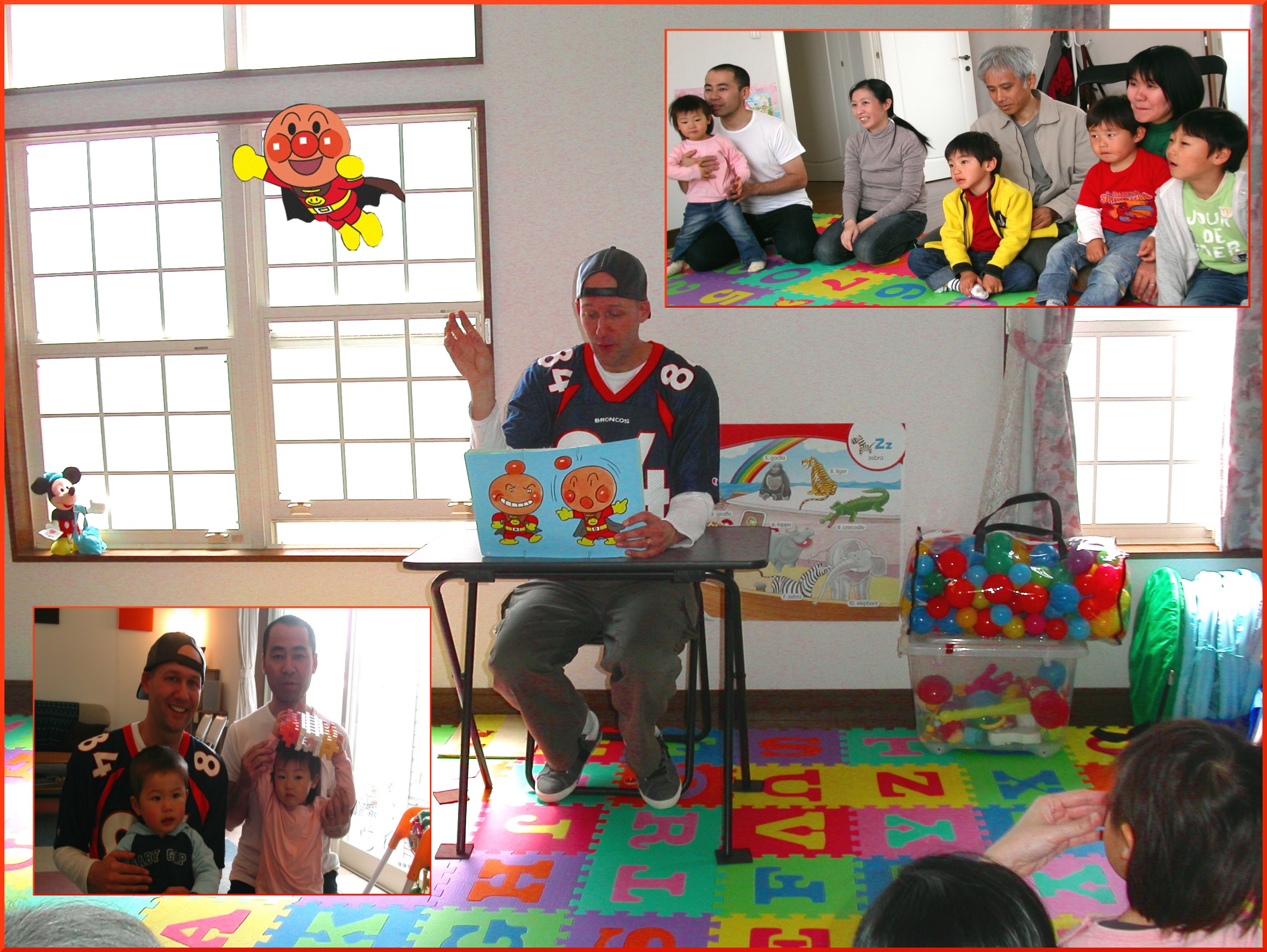 We’ve been meeting so many people lately! It’s really great. Last Saturday we had our 紙しばい event and met some new and wonderful children and parents. We sang and danced and practiced our 英語 and, of course, we enjoyed our アンパンマン story.