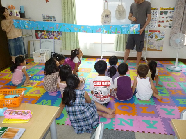 今年のサマースクールのテーマは「水中の生き物たち」。このテーマに沿ったカリキュラムで構成されていますが、第一日目のイングリッシュタイムでは、生き物達の足や手を使って足し算や引き算などの算数にチャレンジ。