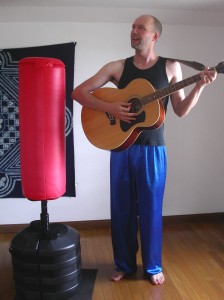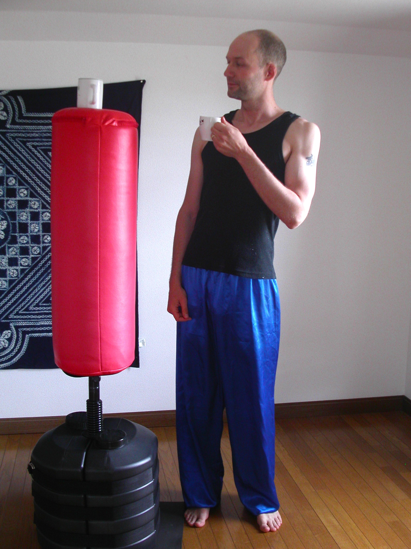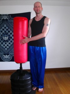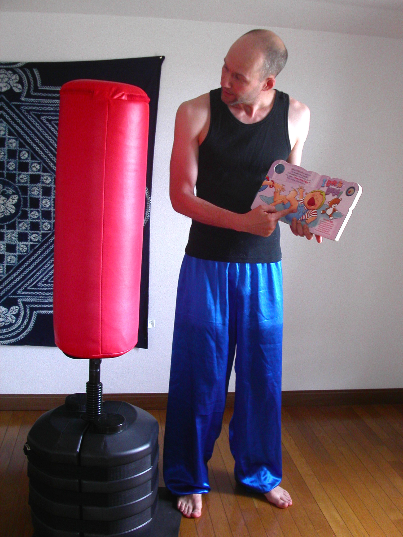 This is a kicking bag. I borrowed it from my friend Peter. We keep it upstairs, and when I’m not teaching English, I play with the bag.