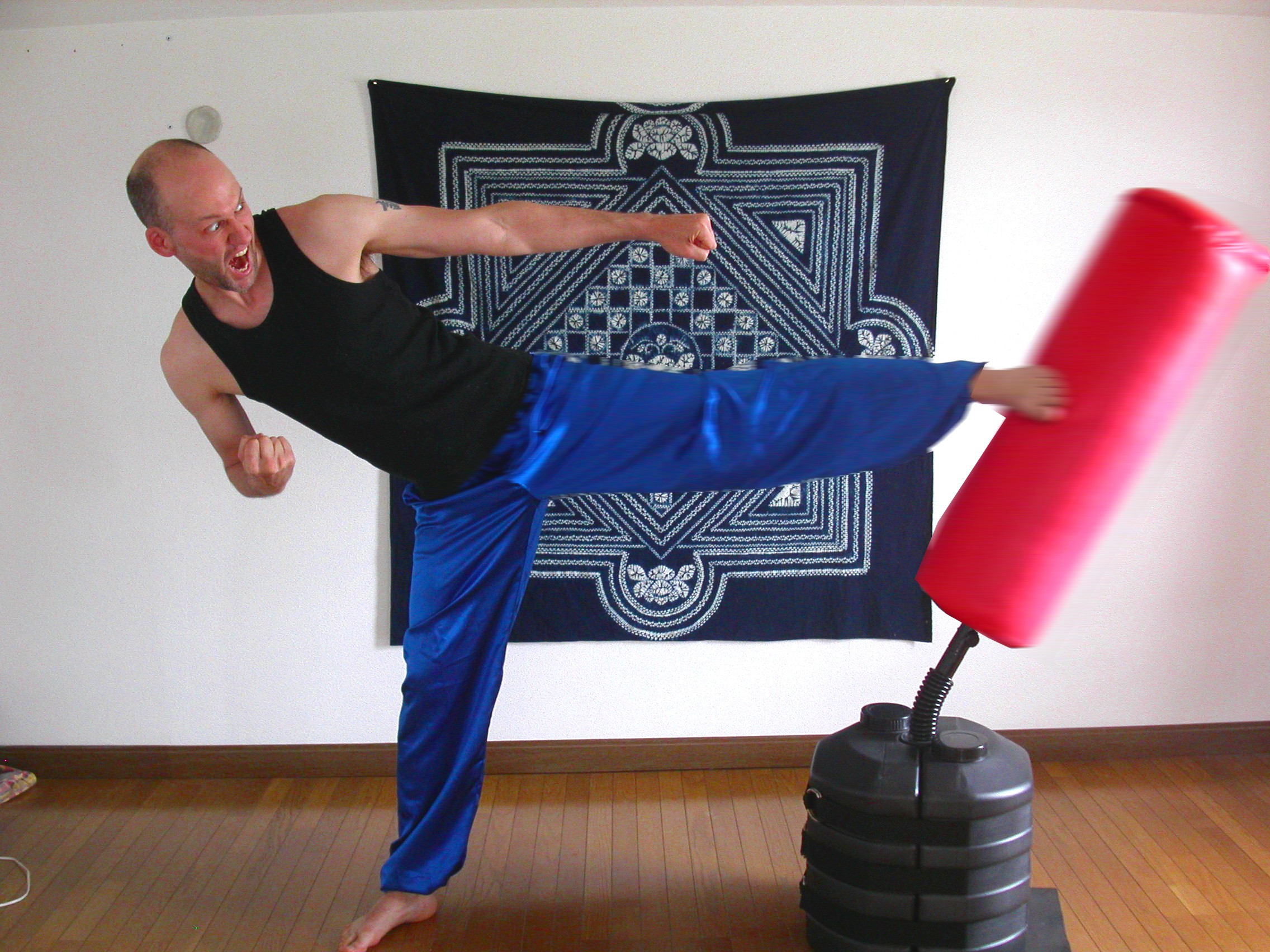 But I’ve found the best thing to do with the kicking bag is to kick it. Hai-YA!