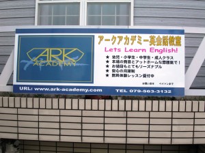 やりたいことは山ほどあるのだけれど時間がない・・・・とついつい後回しにしている作業。ホームページの更新、テキストブックの作成、幼児クラスの教材作成、イベントの企画、学校案内の編集、など挙げ出したらキリがありません。学校の看板作成も 「やりたいリスト」の1つでしたが、なんとか今日その作業を終えることができました。ネットで原稿をメールし、注文した翌々日に看板は手元に届いてました。便利な時代になりましたね。