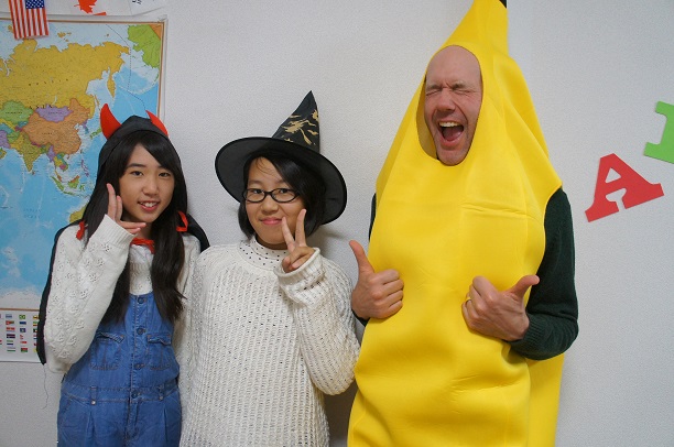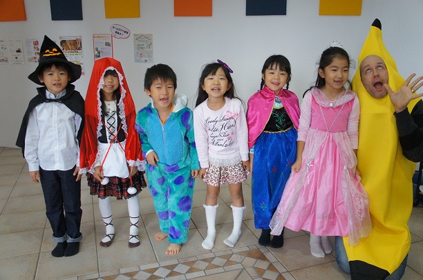 コスチュームを着けるだけで、なぜかテンションがアップ↑。どのクラスも笑顔と笑い声にあふれていました。