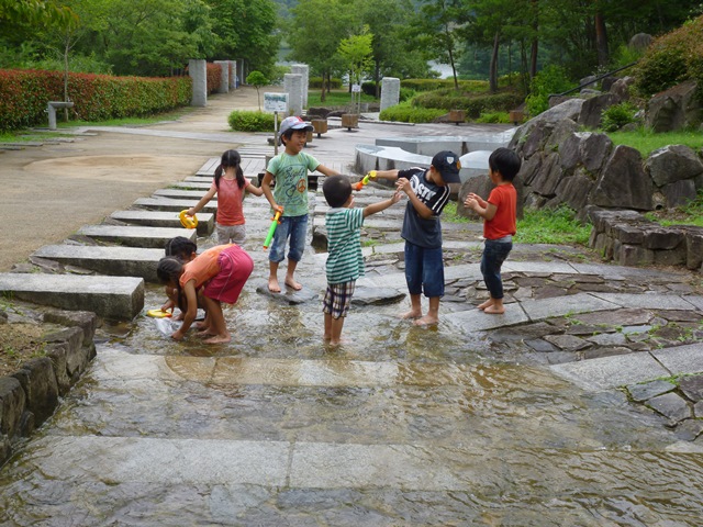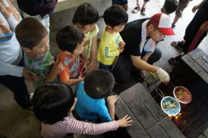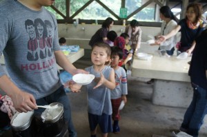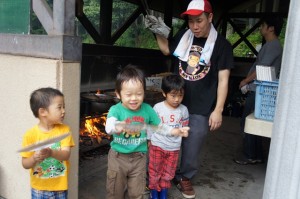 こちらのイベントは、H君のお母様が2カ月ほど前より丁寧に計画して下さったイベントで、初めから終わりまで至れり尽くせり。子供達は自然の中で、クッキングや水遊び、ゲームなどをして大いに楽しみました。また、がきっこクラブからのボランティアさん4人もお手伝いに駆けつけて下さり、イベントを盛り上げてくれました。この「ガキっ子クラブ」、 “本気で遊ぼう”をテーマに、「遊び」を通した青少年健全育成や地域活動、多世代交流の促進を目的としたボランティア団体で、大人も子どもも一生懸命に遊び、その中で世代を越えた心の通い合いができる遊び場作りに努めているそうです。とてもよい青年達で、子供達の心をしっかりつかみ、さわやかな気持ちにさせてくれました。