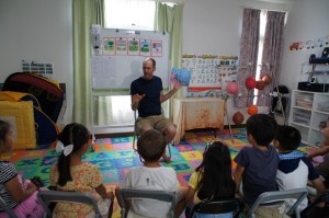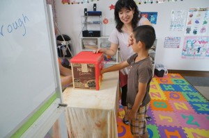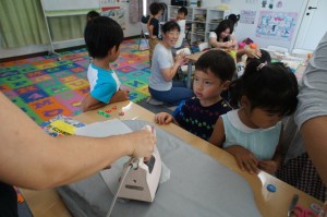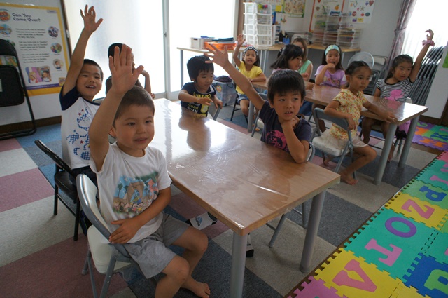 「who wants to try first?」と先生が尋ねると、子供達は手をしっかりあげ、「I want to do that! I want to do that!」と大きな声で連呼していました。