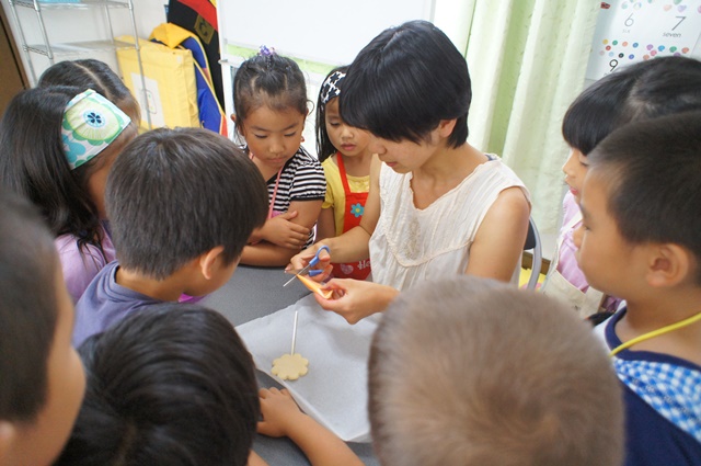 5日間英語のシャワーを浴び、習った言葉を言うだけではなく、それを応用しようとする子供達の努力する姿に感動すらおぼえました。また、机の上だけの勉強ではなく、作る喜びを体験するクラフトや、5感をフル活用するアクティビティーなども取り入れ、子供の心の成長も促すカリキュラムを用意するよう工夫しました。