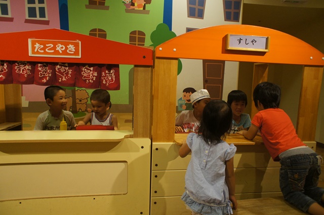 お寿司屋さんやたこやきやさんを疑似体験。男の子達はこのごっご遊びに夢中でした。
