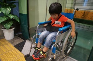 バリアいっぱいの街と少ない街の両方で、車いすにのって電車で出かける体験もしました。