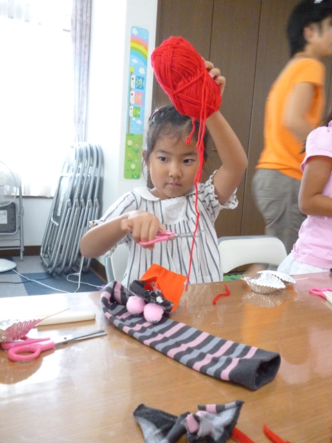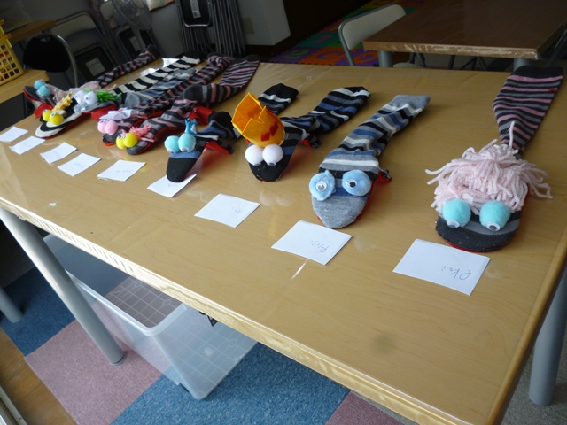 クラフトタイムではソックパペットの制作。個性豊かなソックパペットが勢ぞろいしました。