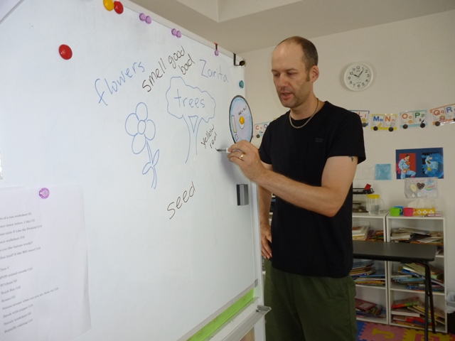 今回のサマースクールのテーマは「Nature(自然)」。2日目は木や花に焦点を当てて、ゲームやワークシートなどを利用し学習しました。